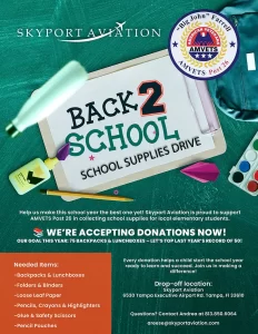 Help us make this school year the best one yet! Skyport Aviation is proud to support AMVETS Post 26 in collecting